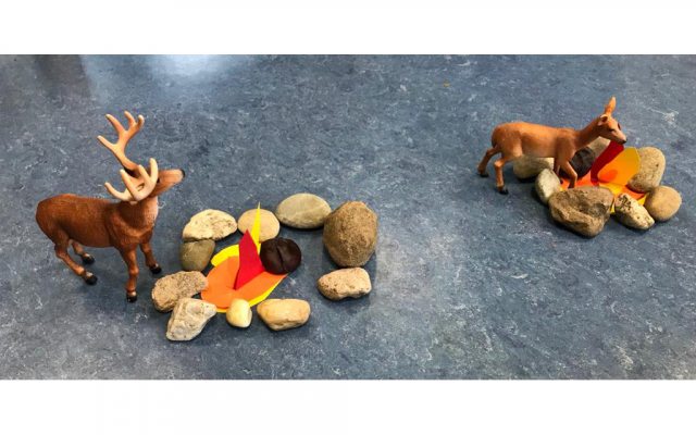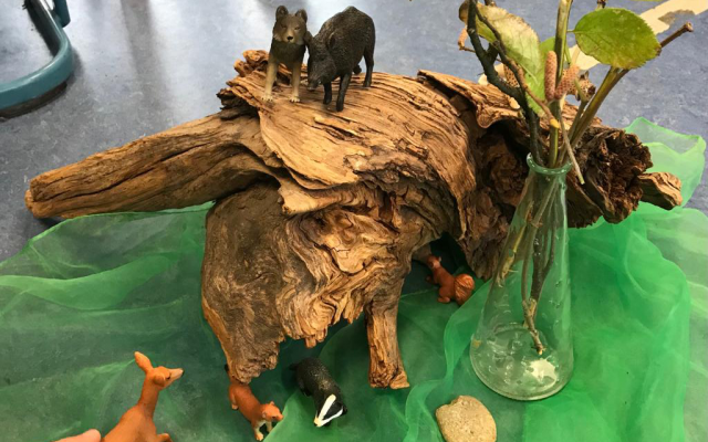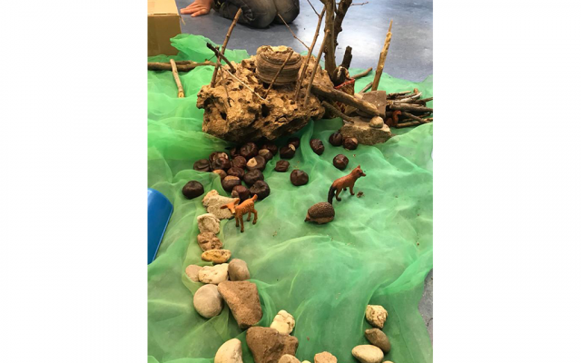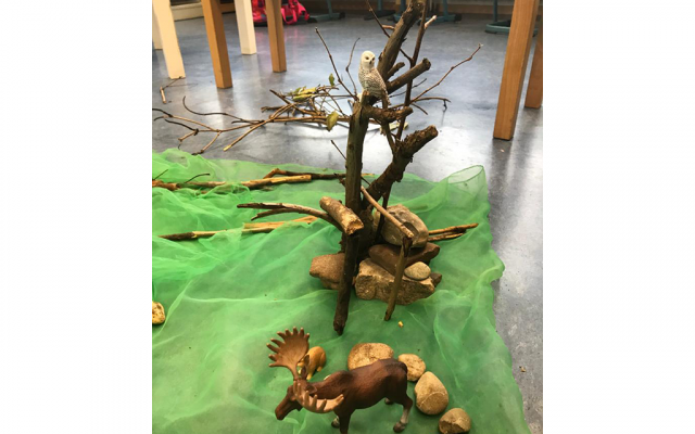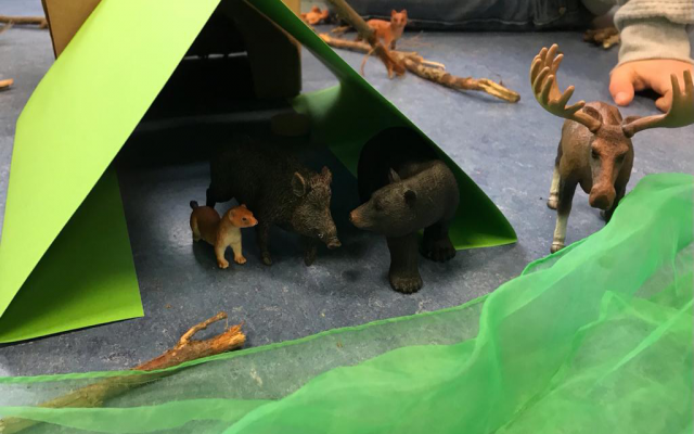 Außerdem zogen auch viele Wald- und Bauernhoftiere ins Klassenzimmer ein und bekamen von den Kindern einen sehr kreativen Lebensraum gestaltet! So lernen die Kinder die heimische Tierwelt durch detailgetreue Nachbildungen kennen, die sowohl im Sachunterricht als auch in den Unterrichtseinheiten in Mathe (sortieren, zuordnen, zählen der Tiere), DAZ (Wortschatzerweiterungen) und in der Spielzeit bei Rollenspielen zum Einsatz kommen.