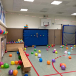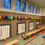 Unsere Anja Stehle - Initiatorin der Sportfaschingsaktion – schmückte die Turnhalle in NW mit viel Liebe und großem Aufwand für alle Klassen!