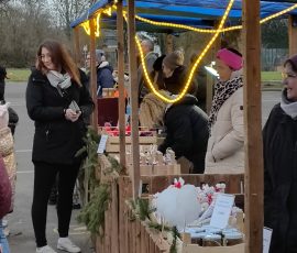 Die Betreuungskräfte boten unter anderem weihnachtliche Basteleien aus Holz an, auch in Zusammenarbeit mit der Werken AG, Bratapfelaufstrich der Koch AG und die Töpfereien der Töpfer-AG. Auch hier waren Kinder gemeinsam mit den Betreuungskräften aktiv und stolz auf „ihre Produkte“.
