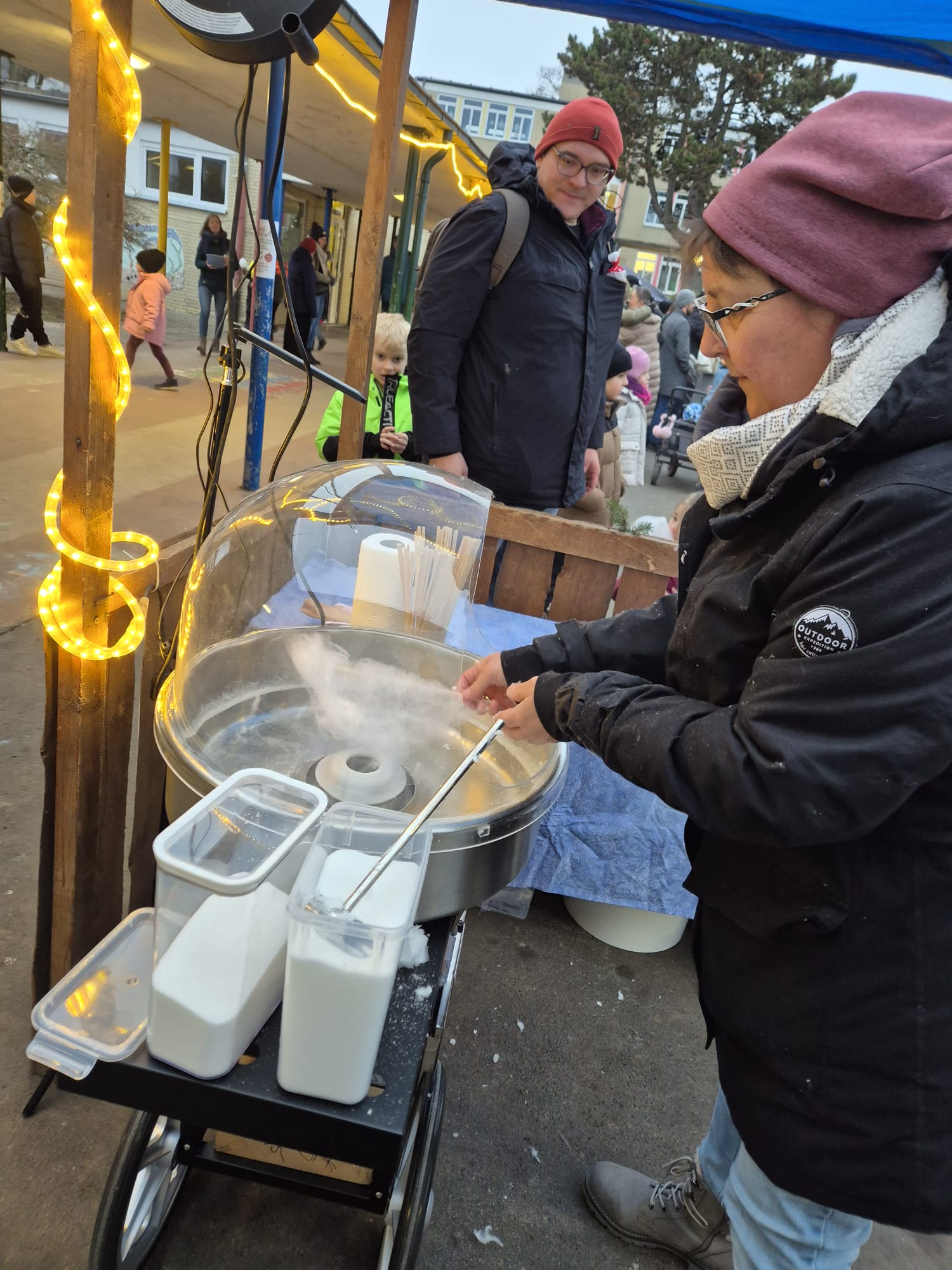 Stärken konnten sich die Besucherinnen und Besucher mit Gegrilltem, gebrannten Mandeln, Zuckerwatte und Waffeln sowie diversen Heiß- und Kaltgetränken. Dieses Angebot war so rege genutzt, dass zum Ende tatsächlich alle Bratwürste ausverkauft waren. Hungern mussten die Besucher jedoch nicht, gab es auch zusätzlich Brezeln zur herzhaften Stärkung.