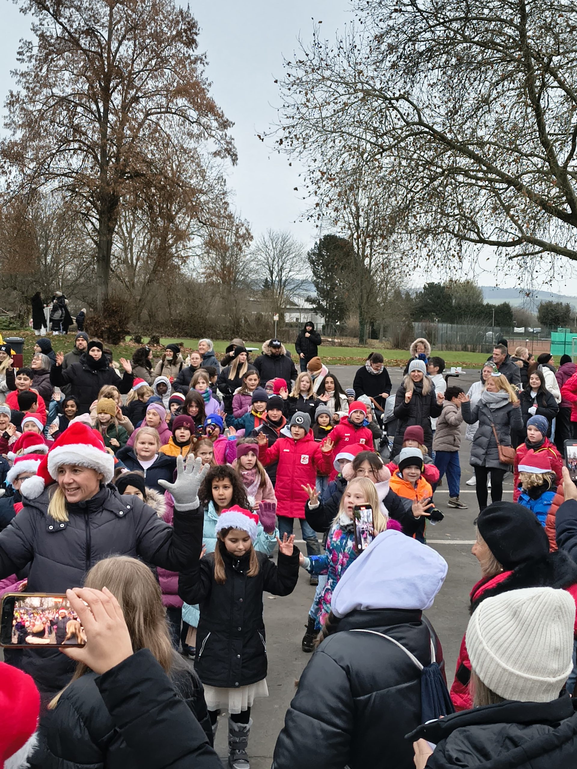 Die Kinder der Schule waren zum Einen über die Bläserklasse mit einem weihnachtlichen Konzert aktiv und machten einen Flashmob-Tanz zu dem Weihnachtsklassiker „Santa Clause is coming to town“, den die Lehrkräfte mit ihnen als große Überraschung einstudiert hatten. Und mit der Betreuung „ihrer“ Stände konnten sie Verantwortungsgefühl, Gemeinschaft und nebenbei noch Rechnen üben.